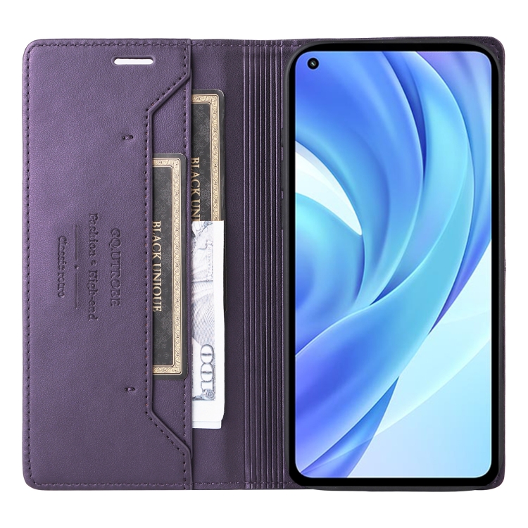 Funda de Cuero Antirrobo Rfid Gqutrobe G01 para Xiaomi Mi 11 Lite (Morado)