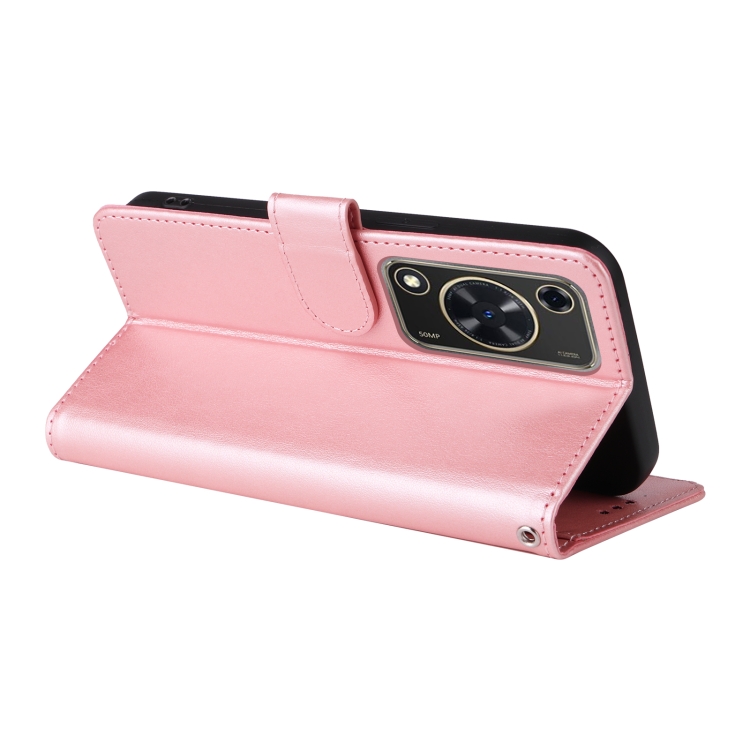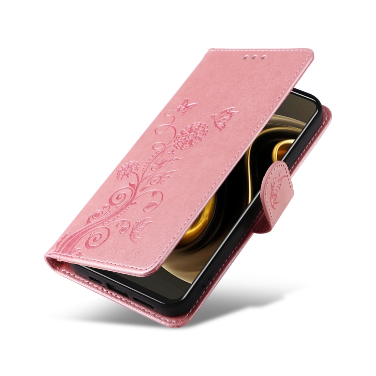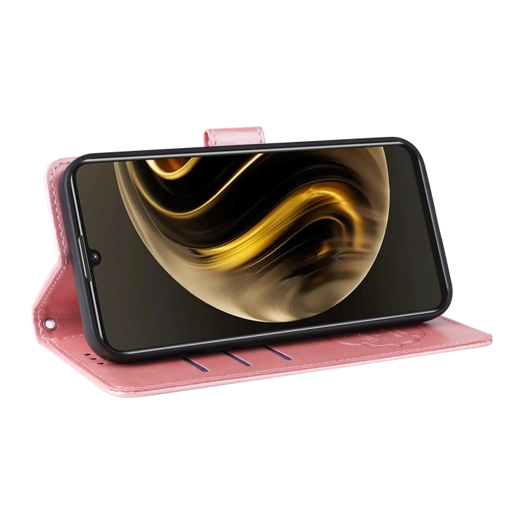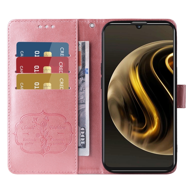 Funda de Cuero Huawei Nova Y72 4G Enjoy con 70 Flores de Mariposa en Relieve (Oro Rosa)