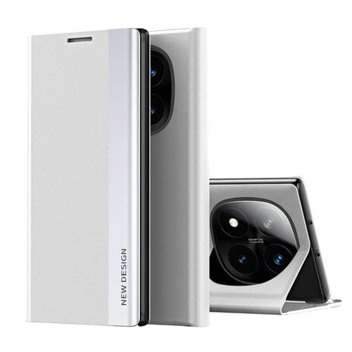 Funda de Cuero con Adsorción Lateral Galvanizada para Xiaomi Redmi Note 14 Pro+ 5G (Plateada)