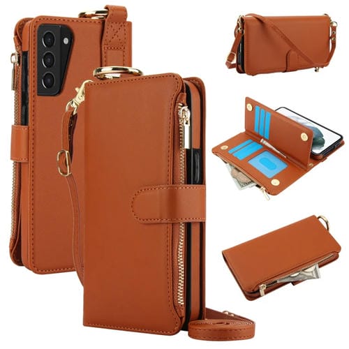 Funda Cuero con Anillo Cruzado y Billetera para Samsung Galaxy S21+ 5G (Marrón)