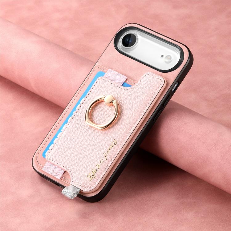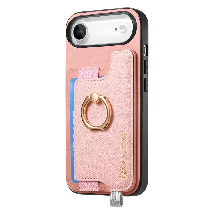 Funda de cuero con anillo y tarjetero para iPhone Air Retro Magsafe Cross (rosa)