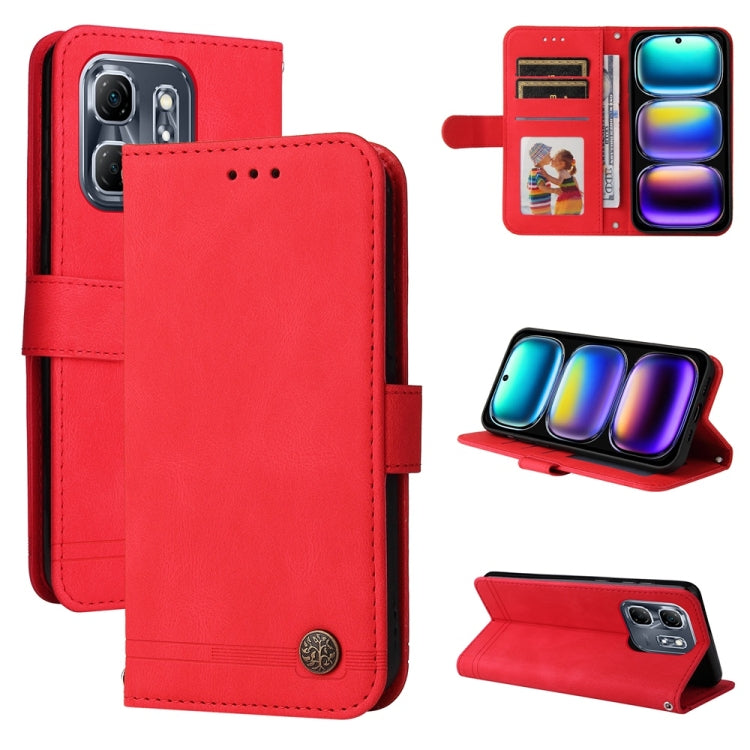 Funda de Cuero para Infinix Hot 50I/Smart 9 con Botones de Metal y Diseño Árbol de la Vida (Rojo)