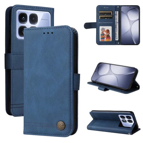 Funda de Cuero con Botones de Metal y Diseño de Árbol de la Vida para Redmi K70 Ultra (Azul)