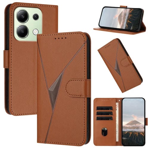 Funda de Cuero con Hebilla Triangular para Redmi Note 13 4G (Marrón)