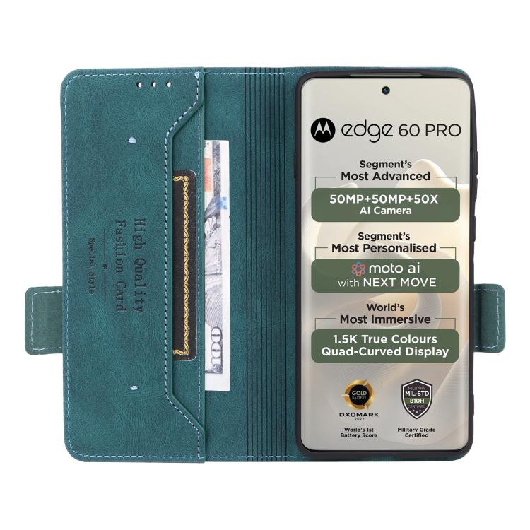 Funda de cuero con cierre magnético para Motorola Edge 60 Pro (verde)