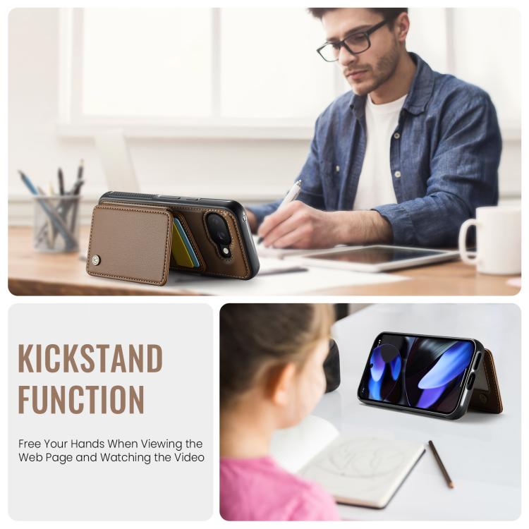 Funda de Cuero con Cierre Magnético Rfid para Google Pixel 9A Jeehood J05 Business (Marrón)