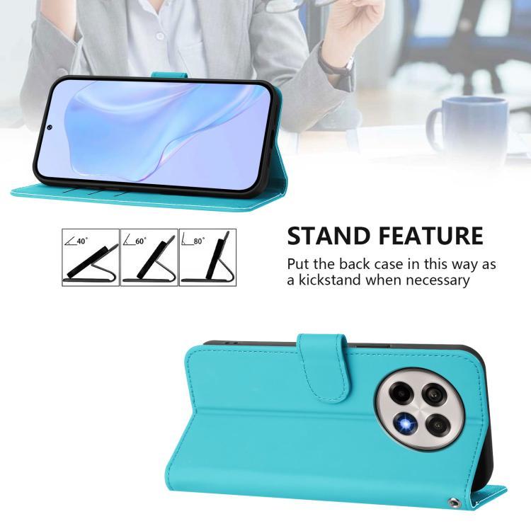 Funda de Cuero con Cordón para OnePlus Ace 5 Pro / Ace 5 / 13R Textura Piel (Azul Lago)