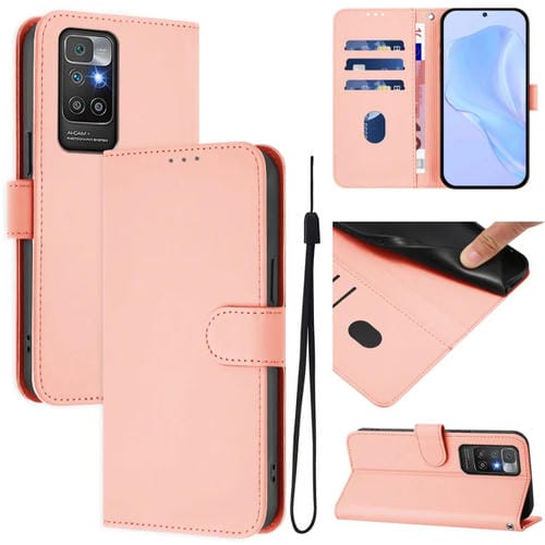 Funda de Cuero con Cordón para Redmi 10 4G 2021 con Diseño Global de Piel Sintética de Color Sólido (Rosa)