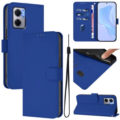 Funda de Cuero con Cordón para Redmi 10 5G/Note 11E 5G con Tacto de Piel de Color Sólido (Azul Oscuro)
