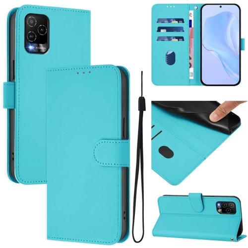 Funda de cuero con cordón para teléfono Blu View 5 Pro Skin Feel (Azul Lago)