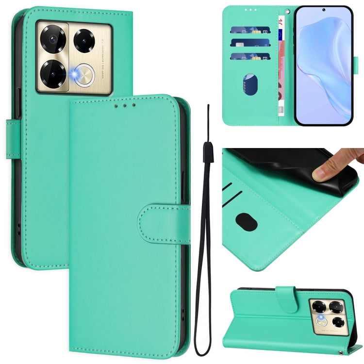 Funda de Cuero con Cordón para Teléfono Infinix Note 40 Pro 4G con Tacto de Piel (Verde)