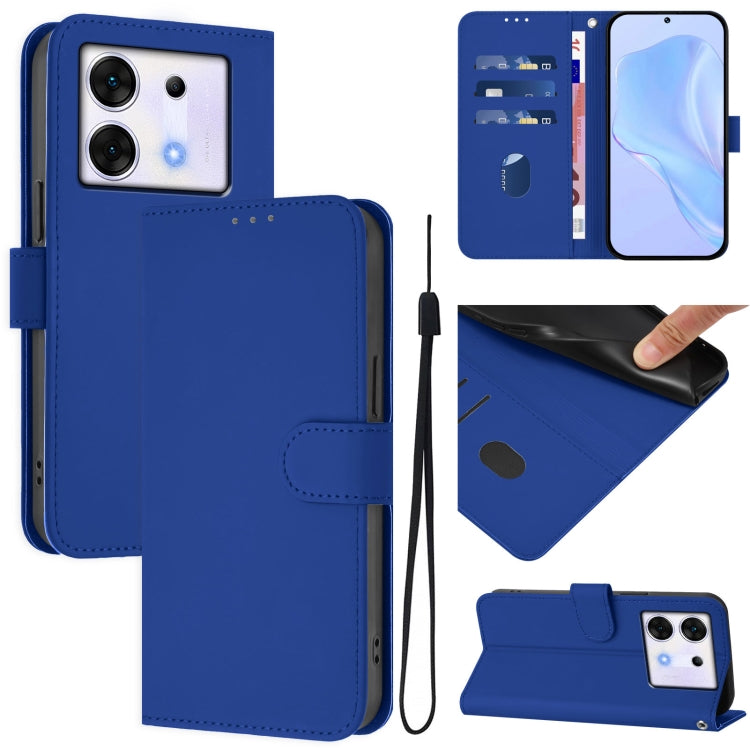 Funda de Cuero con Cordón para Infinix Zero 30 5G con Tacto de Piel (Azul Oscuro)