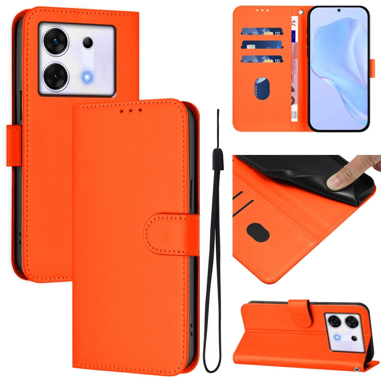 Funda de Cuero con Cordón para Teléfono Infinix Zero 30 5G con Tacto de Piel (Naranja)