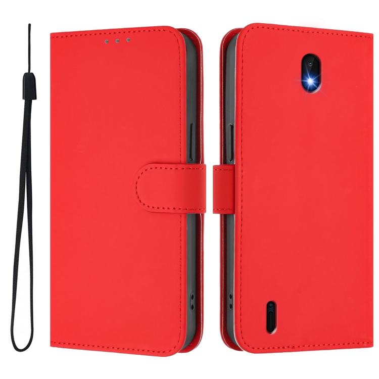 Funda de Cuero con Cordón para Nokia C01 Plus y C1 2Nd Edition (Rojo)