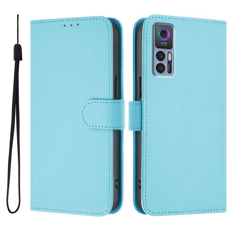 Funda de Cuero con Cordón para TCL 30 4G / 30 5G / 30+ con Tacto de Piel (Azul Cielo)