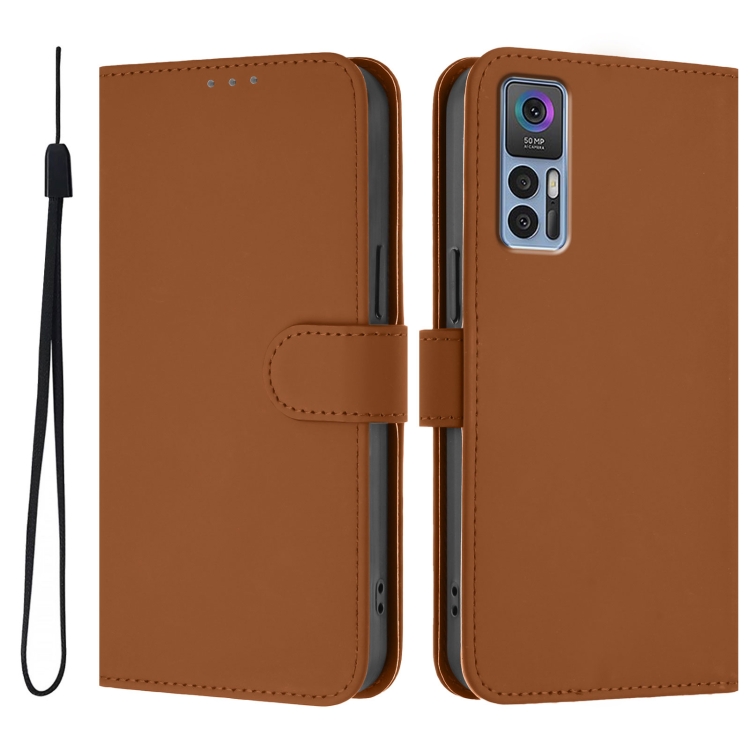 Funda de Cuero con Cordón para TCL 30 4G 30 5G 30+ con Tacto de Piel (Marrón)