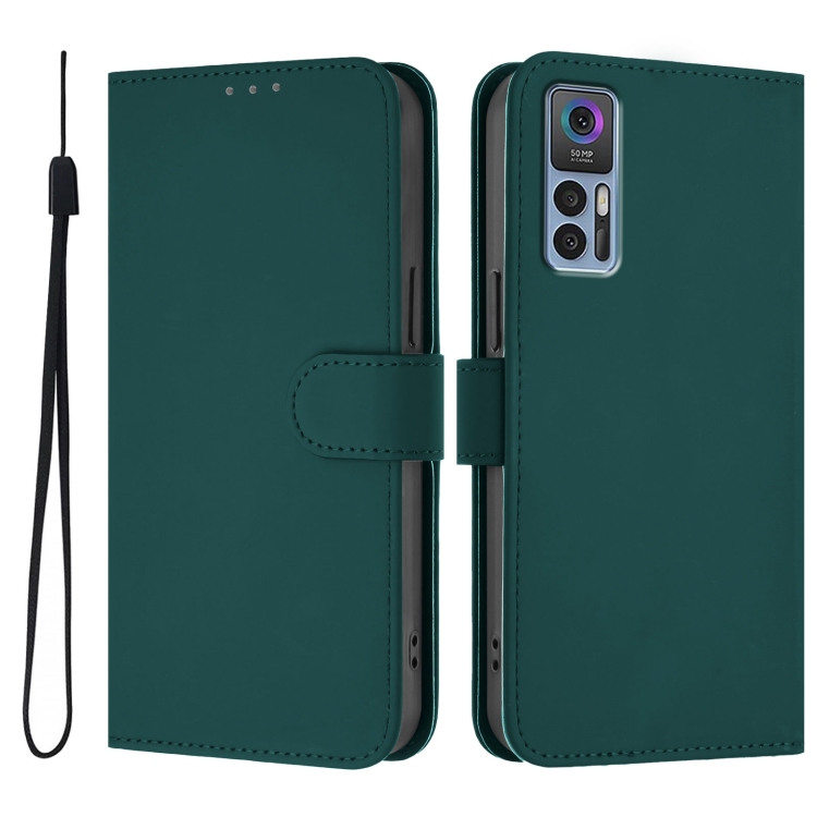 Funda de Cuero con Cordón para Teléfono TCL 30 4G 30 5G 30+ Tacto de Piel (Verde Oscuro)