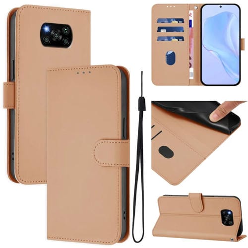 Funda de Cuero con Cordón para Teléfono Xiaomi Poco X3 Pro / X3 Nfc / X3 Skin Feel de Color Liso (Desnudo)