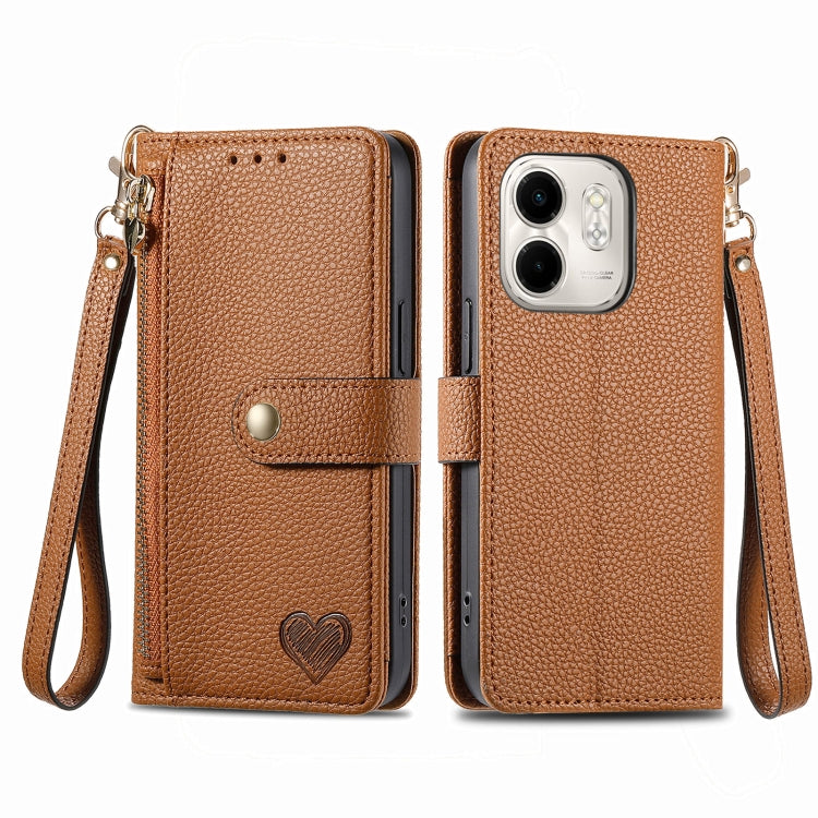 Funda de Cuero Love con Cordón y Cremallera para Infinix Smart 9 (Marrón)
