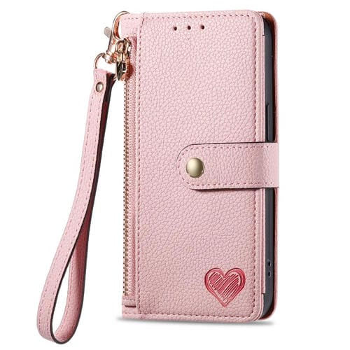 Funda de cuero con cordón y cremallera Love para iPhone 17 (rosa)