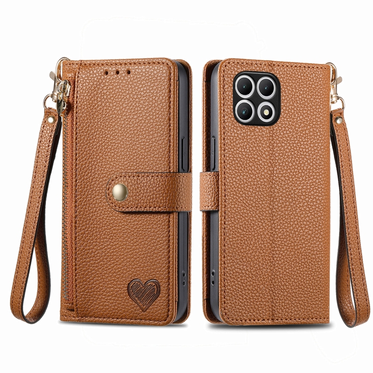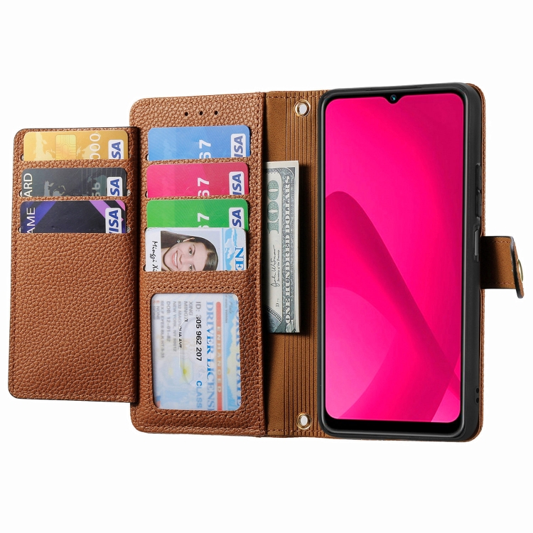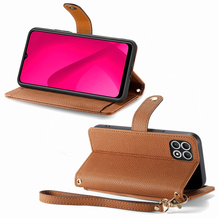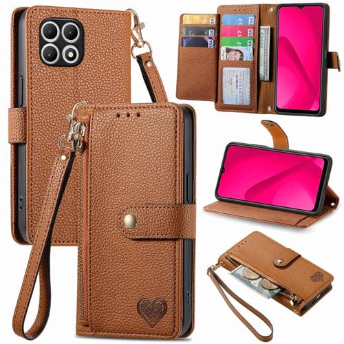 Funda de Cuero con Cordón y Cremallera Love para Teléfono T-Mobile T Phone 2 5G (Marrón)