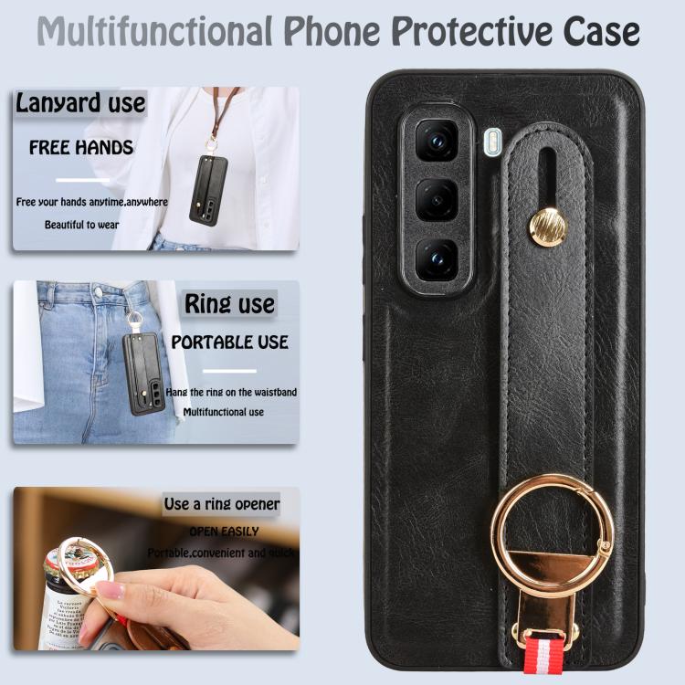 Funda de Cuero con Correa para El Brazo para Infinix Hot 50 Pro+ 4G X6880 (Negra)