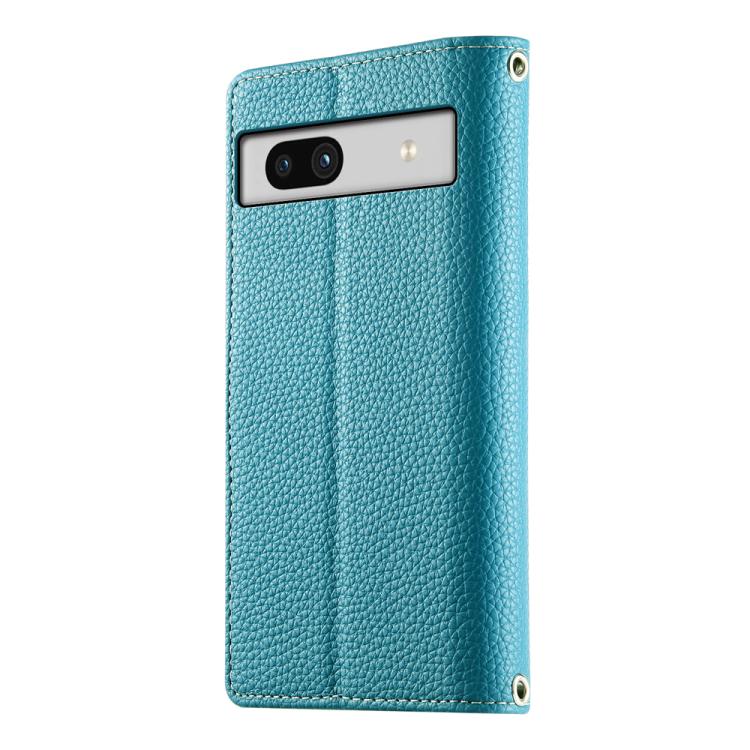 Funda de cuero con cremallera para Google Pixel 7a, con múltiples tarjetas y costuras, con correa corta (azul)