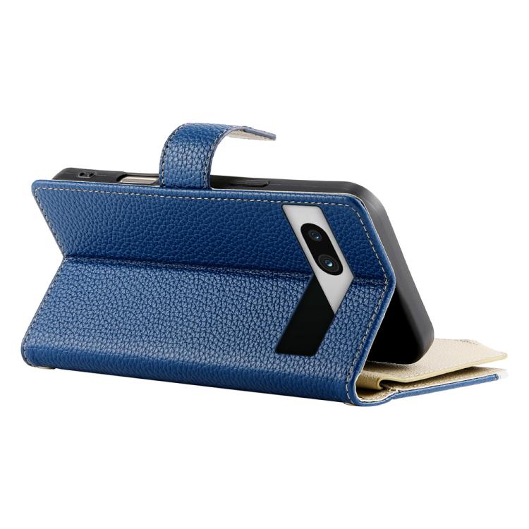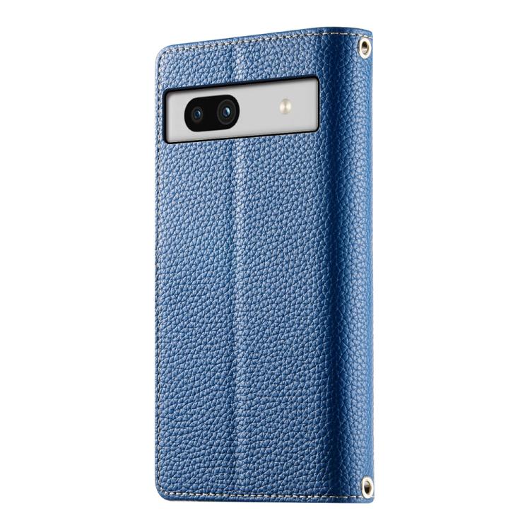 Funda de cuero con cremallera para Google Pixel 7a, con múltiples tarjetas y costuras, con correa corta (azul oscuro)