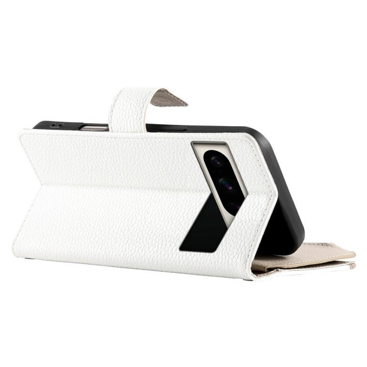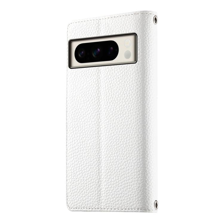 Funda de cuero con cremallera para Google Pixel 8 Pro, con múltiples tarjetas y costuras, con correa corta (blanca)