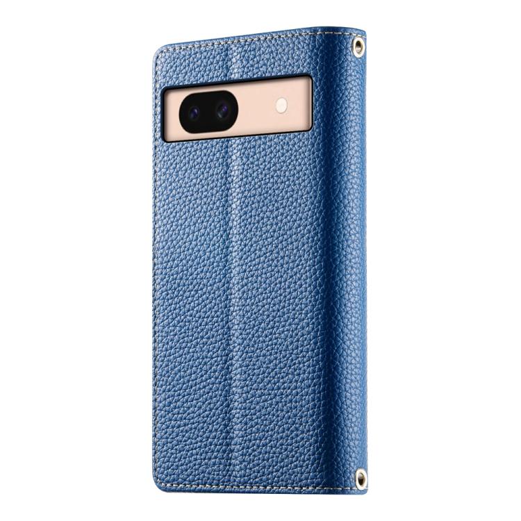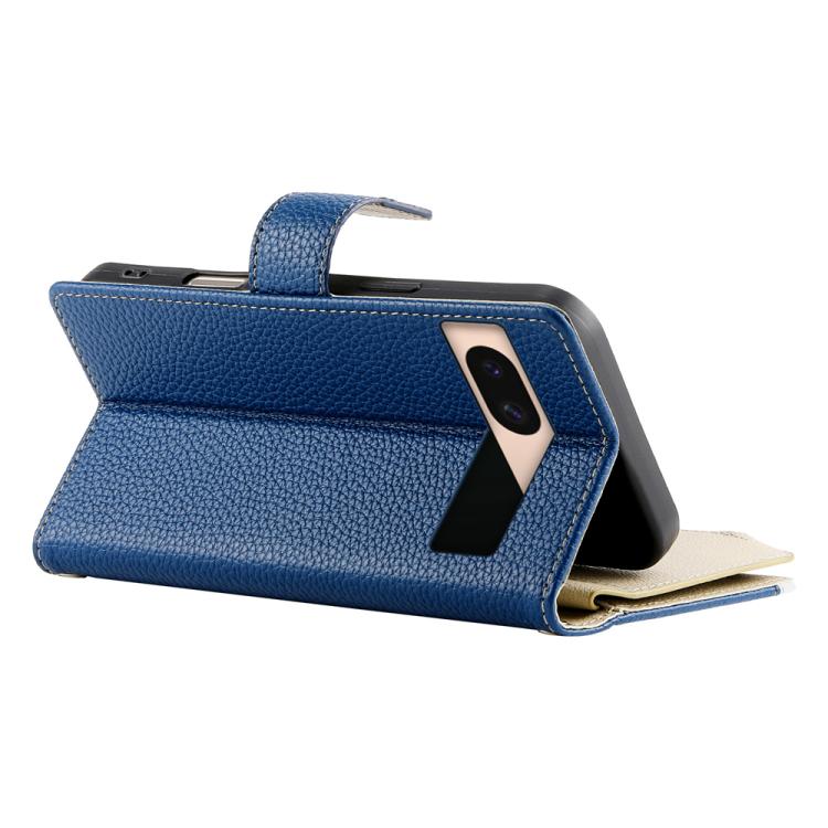 Funda de cuero con cremallera para Google Pixel 8a, con múltiples tarjetas y costuras, con correa corta (azul oscuro)