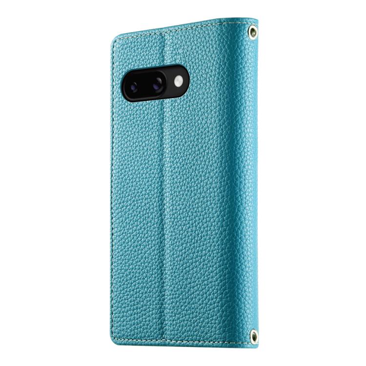 Funda de cuero con cremallera para Google Pixel 9a, con múltiples tarjetas y costuras, con correa corta (azul)