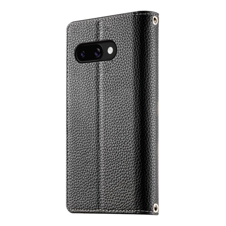 Funda de cuero con cremallera para Google Pixel 9a, con múltiples tarjetas y costuras, con correa corta (negra)