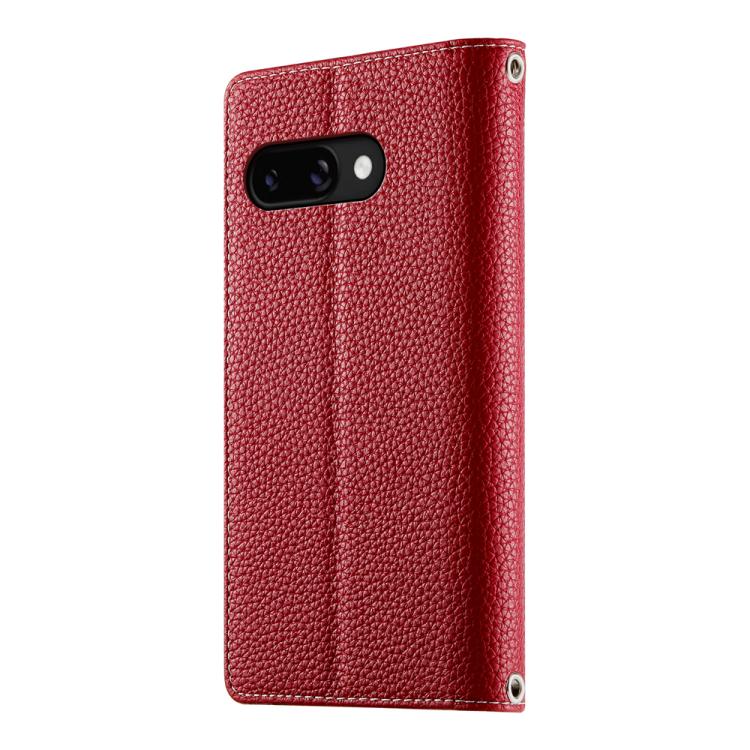Funda de cuero con cremallera para Google Pixel 9a, con múltiples tarjetas y costuras, con correa corta (roja)