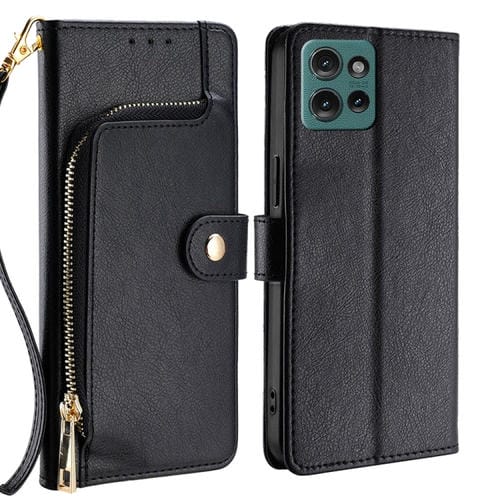 Funda de Cuero con Cremallera para Motorola Edge 50 5G (Negra)