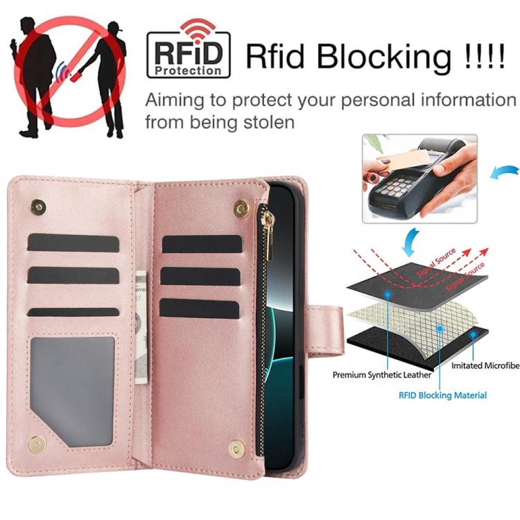 5. Función de cartera multitarjeta: Múltiples ranuras para tarjetas y bolsillos con cremallera, compartimentos para efectivo para guardar tarjetas de crédito y billetes pequeños.
