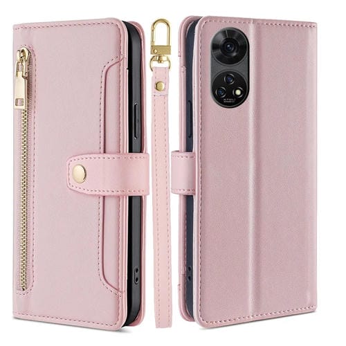 Funda de Cuero con Cremallera para Teléfono ZTE Anshin Family (Rosa) Diseño de Ovejas