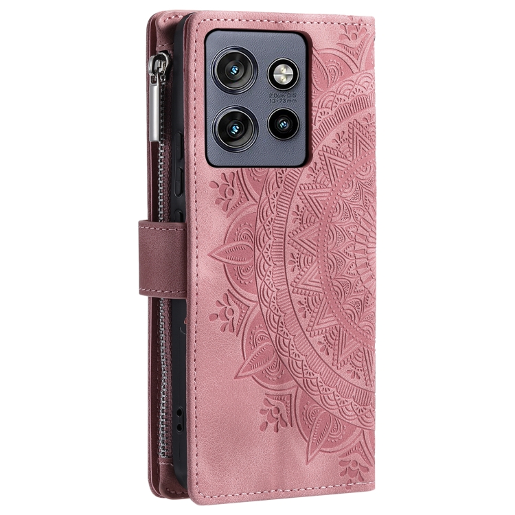 Funda de Cuero con Cremallera y Múltiples Tarjetas para Motorola Edge 50 Neo (Rosa)