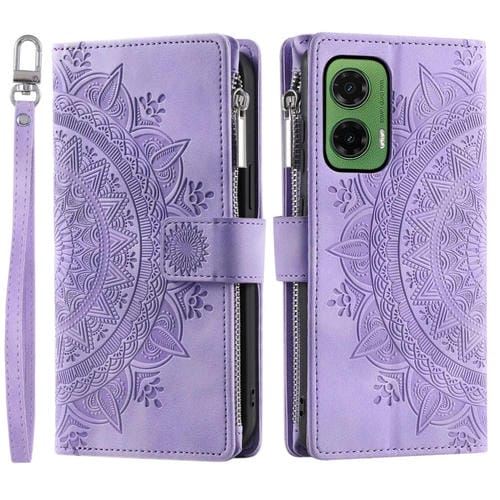 Funda de Cuero con Cremallera y Múltiples Tarjetas para Motorola Moto G35 (Morado)