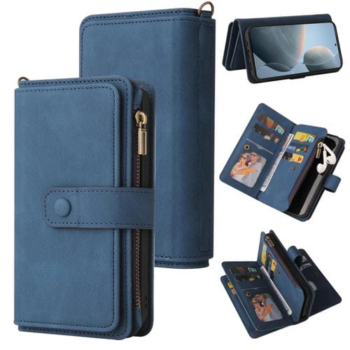 Funda de Cuero con Cremallera y Ranuras para Tarjetas Múltiples para Xiaomi Poco F6 Pro (Azul)