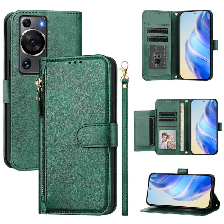 Funda de Cuero con Cremallera y Ranuras para Tarjetas para Huawei P60/P60 Pro (Verde)