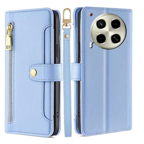 Funda de Cuero con Cremallera y Textura de Oveja para Tecno Camon 30 Lite (Azul)