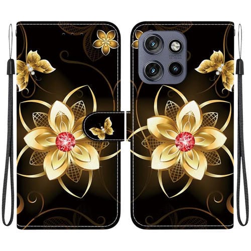 Funda de Cuero Motorola Edge 50 Neo 5G con Dibujo de Colores y Textura de Cristal (Flor Dorada)