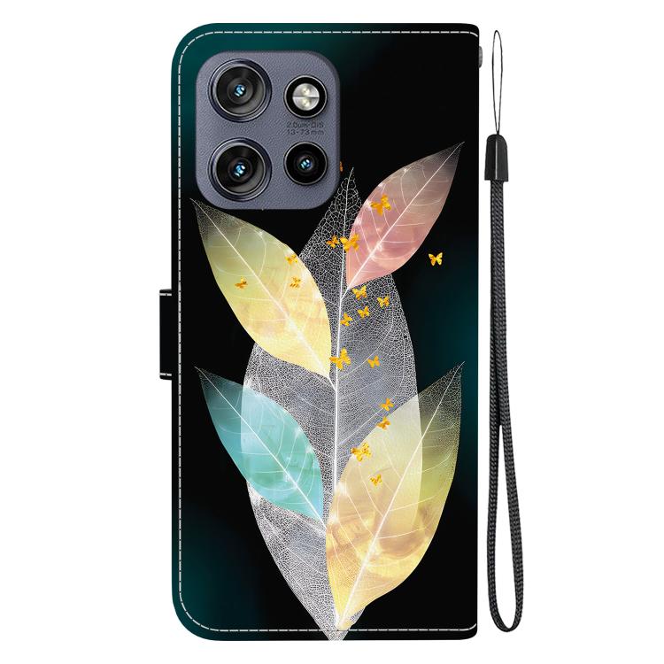 Funda de Cuero Motorola Edge 50 Neo 5G con Dibujo y Textura de Cristal (Hojas de Colores)
