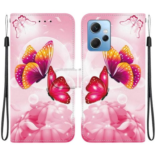 Funda de Cuero con Dibujo de Colores y Textura de Cristal Global para Redmi Note 12 4G (Mariposas Rosas)