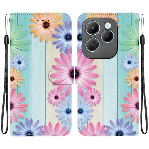 Funda de Cuero para Infinix Hot 40/40 Pro con Dibujo de Colores y Textura de Cristal (Girasoles)