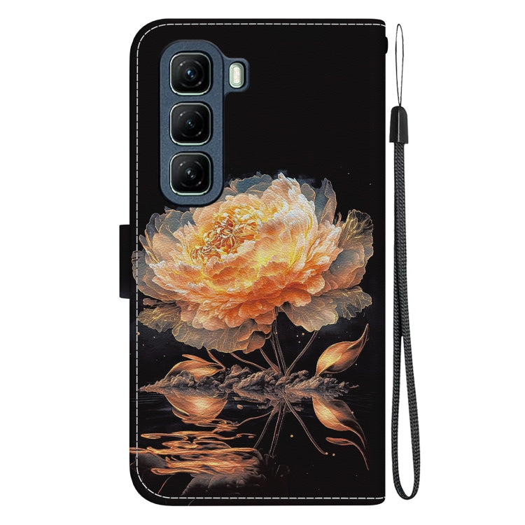 Funda de Cuero para Infinix Hot 50 4G con Dibujo de Colores y Textura de Cristal (Peonía Dorada)