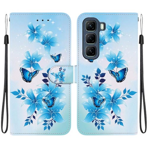 Funda de Cuero con Dibujo y Textura de Cristal para Infinix Hot 50 5G (Mariposas Azules)