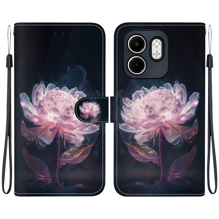 Funda de Cuero con Dibujo y Textura de Cristal para Infinix Hot 50I Smart 9 (Peonía Morada)