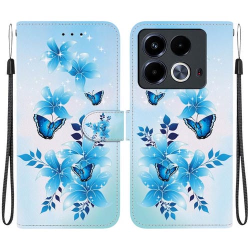 Funda de Cuero para Infinix Note 40 4G con Dibujo de Colores y Textura de Cristal (Mariposas Azules)