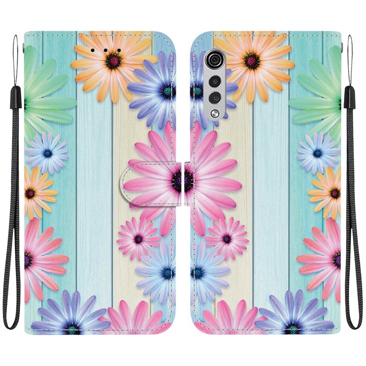 Funda de Cuero LG Velvet 5G G9 4G con Dibujo de Colores y Textura de Cristal (Girasoles)